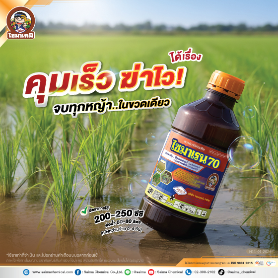 ข้าวนาหว่านน้ำตม ใช้อัตรา 200-250 มิลลิลิตร ต่อน้ำ 60-80 ลิตร พ่นบนพื้นที่ 1 ไร่ หลังหว่านข้าว 7-14 วัน ก่อนพ่นต้องระบายน้ำออกจากนา และทดน้ำเข้านาหลังพ่นสาร 1-3 วัน